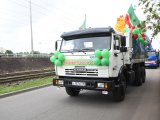 Колонна из КАМАЗов начала свое движение по городу от парка Сидоровский. Финальной точкой станет главная сцена праздника – майдан парка Прибрежный.