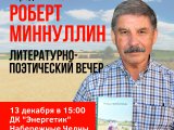 Сегодня во Дворце культуры "Энергетик" пройдет творческий вечер народного поэта Татарстана, Заслуженного работника культуры Республики Башкортостан Роберта Миннуллина.