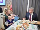Вместе с главами районов мэр автограда встретился с семьями и поздравил матерей, жен и детей погибших воинов с предстоящим праздником.