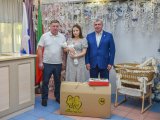 Мэр города пообщался с военнослужащим, который находится в отпуске, а также вручил подарки үноворожденному.