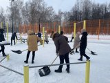 Более 100 студентов провели работу по очистке тротуаров от наледи и снега.