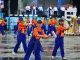 Празднование Дня строителя продолжается театрализованным представлением, в котором участвуют около 750 участников.