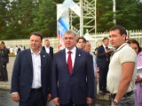 Перед официальным празднованием Дня строителя мэр Наиль Магдеев, глава Минстроя Татарстана Марат Айзатуллин осмотрели экспозиции.
