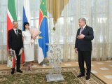 Во Дворце торжеств сегодня в законный брак вступили Руслан и Людмила. С рождением семьи новобрачных поздравил мэр города Наиль Магдеев.
