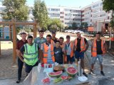 Жители 50 комплекса совместно с УК "Камстройсервис» во дворе жилого дома 50/05 организовали обед для рабочих, которые благоустраивают их дворы по республиканской программе "Наш двор".