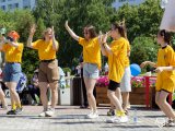 Самые маленькие посетители с удовольствием продемонстрировали свои творческие способности в конкурсе рисунков на асфальте «Счастливы вместе» от объединения «Фиолетовый НЕОН».