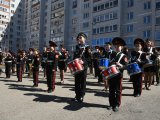 Жители микрорайона и ветераны Великой Отечественной войны исполнили песню «День Победы» под звуки оркестра духовых и ударных инструментов кадетской школы №82 имени Героя Советского Союза Ильдара Маннанова.
