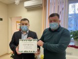 Сертификат в размере 70 тысяч рублей директору учреждения Ильгизару Салимханову вручил депутат Государственного Совета Республики Татарстан Марсель Мингалимов.