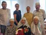 Рашиде Гаптрахмановне Мубаракшиной передали подарки и поздравления от имени президента России Владимира Путина и мэра Набережных Челнов Наиля Магдеева.