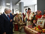 Перед началом заседания Фарид Мухаметшин в сопровождении мэра города Набережные Челны Наиля Магдеева осмотрел выставку образцов национального творчества.