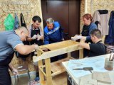 Обучающиеся в столярной мастерской завершили работу над поделкой.