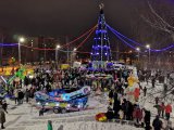 На территории парка организовали все для праздничного настроения: аттракционы, горки, песни, танцы, световое шоу и флешмоб Дедов Морозов. Недалеко от елки оборудовали каток.