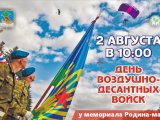 2 августа в 10:00 у мемориала «Родина-мать» состоится торжественное мероприятие, посвященное Дню Воздушно-Десантных Войск.