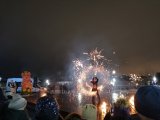 На площадке у новогодней ёлки организовали конкурсную игровую программу с призами. Кульминацией праздника стало Огненное шоу.