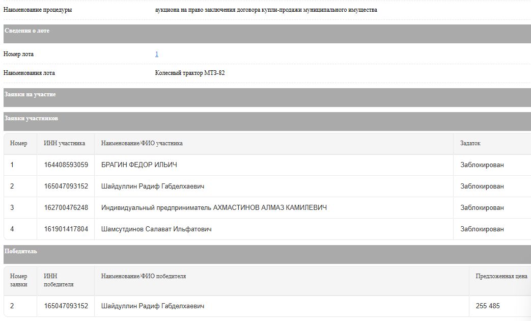 Электронный аукцион по продаже имущества МУП "Парк культуры и отдыха" (спецтехника-трактор колесный) на 09.00 20.06.2025г.