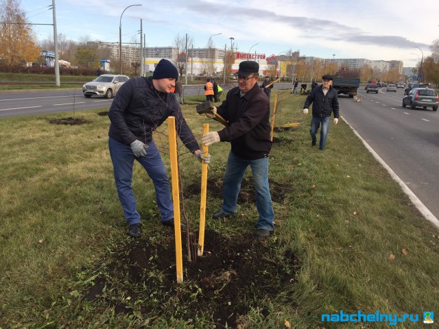 Сотрудники администрации Комсомольского района, Управления МВД России по г. Набережные Челны, председатели территориальных общественных самоуправлений, работники  «Электротранспорта» и  «Горзеленхоза» высадили деревья: березы, груши и яблони появились на проспекте Казанский и на разделительной полосе проспекта Набережночелнинский. Всего высадили 230 молодых саженцев.