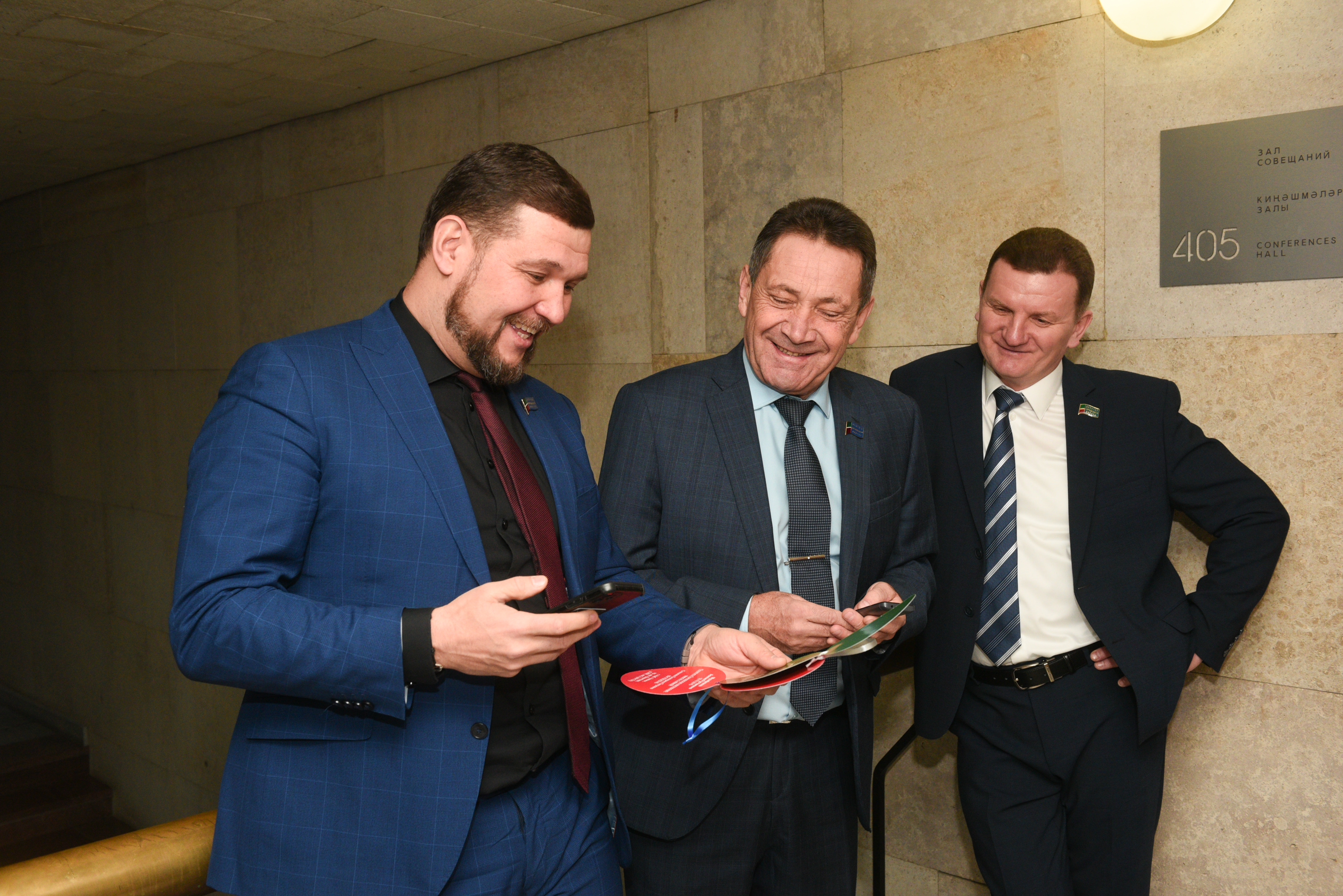 Бассейнның символик ачкычын, шулай ук спорт инвентаре һәм җиһазлары алу өчен сертификат спорт мәктәбе директоры Айдар Габдрахмановка тапшырылды.
