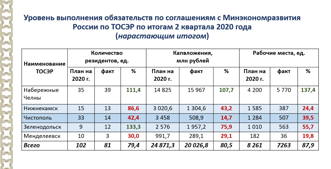 Отметим, что ТОСЭР «Набережные Челны» – лидеры по количеству привлеченных резидентов, сумме инвестиций и созданию рабочих мест среди территорий опережающего социально-экономического развития республики.