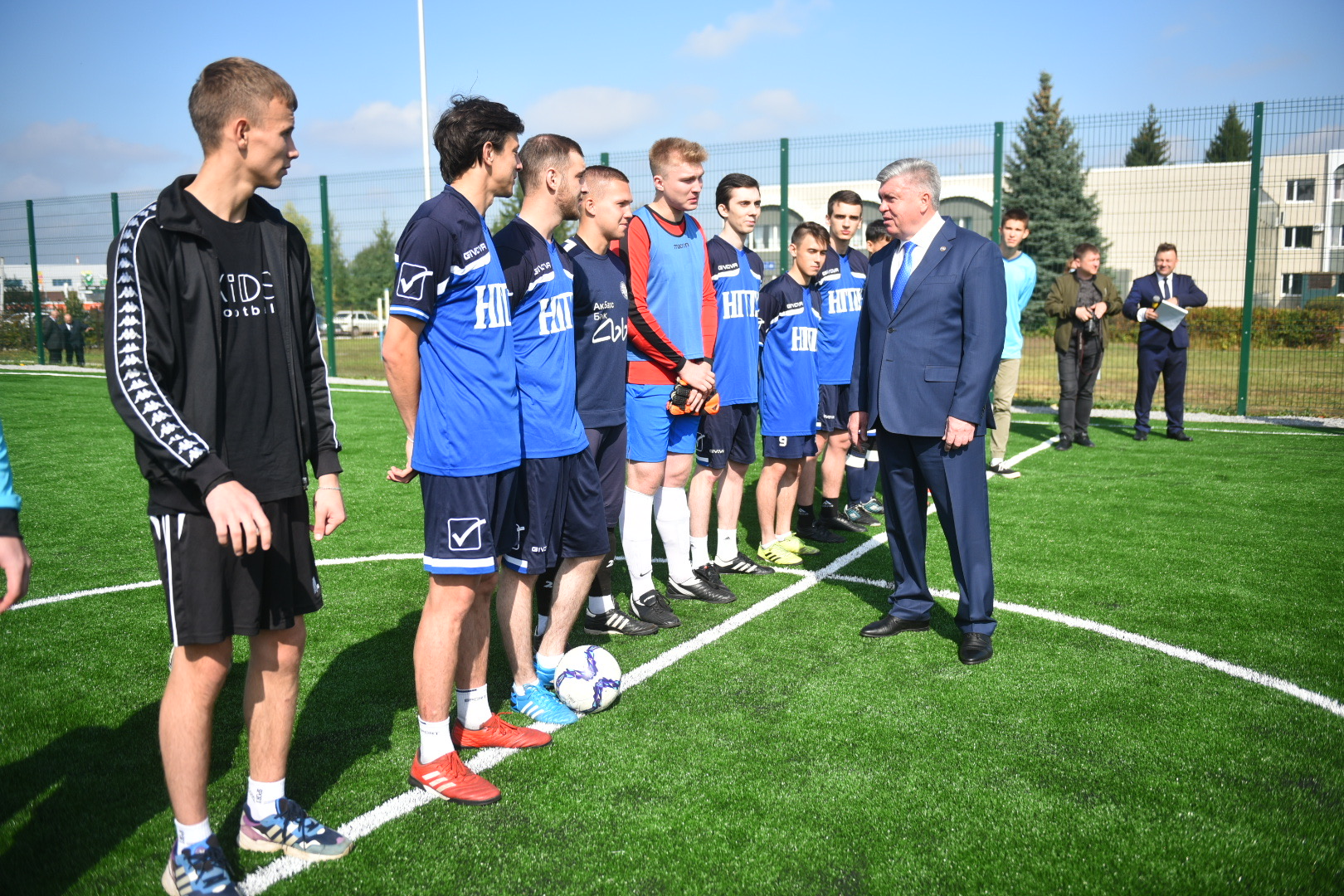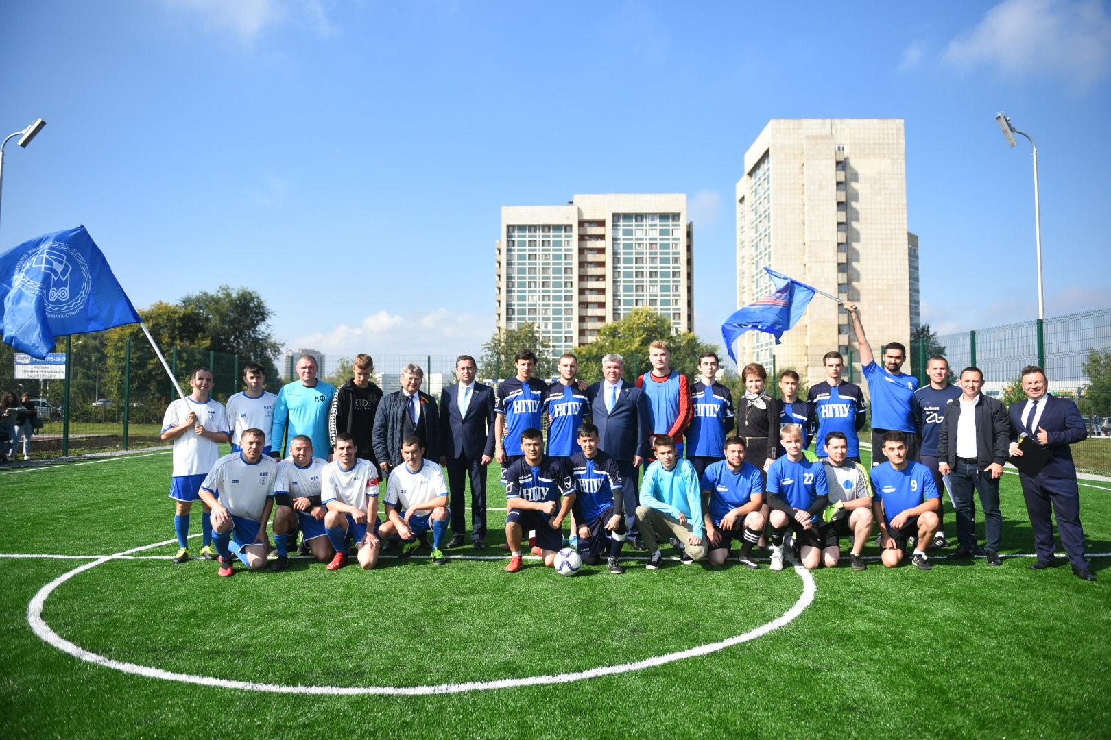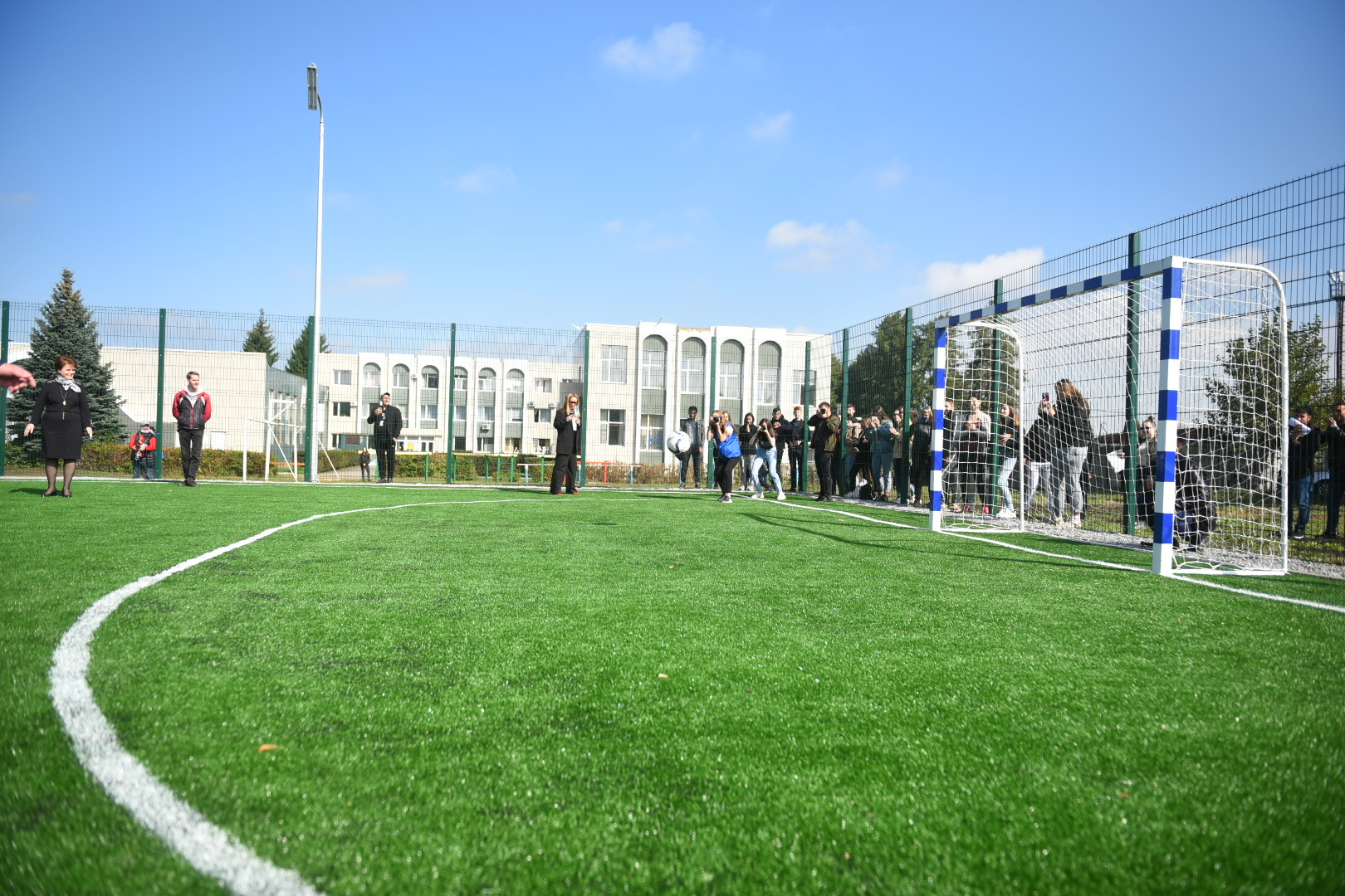 В торжественной обстановке состоялось открытие новой спортивной площадки по мини-футболу, которая появилась на территории НГПУ. В мероприятии принял мэр города Наиль Магдеев.