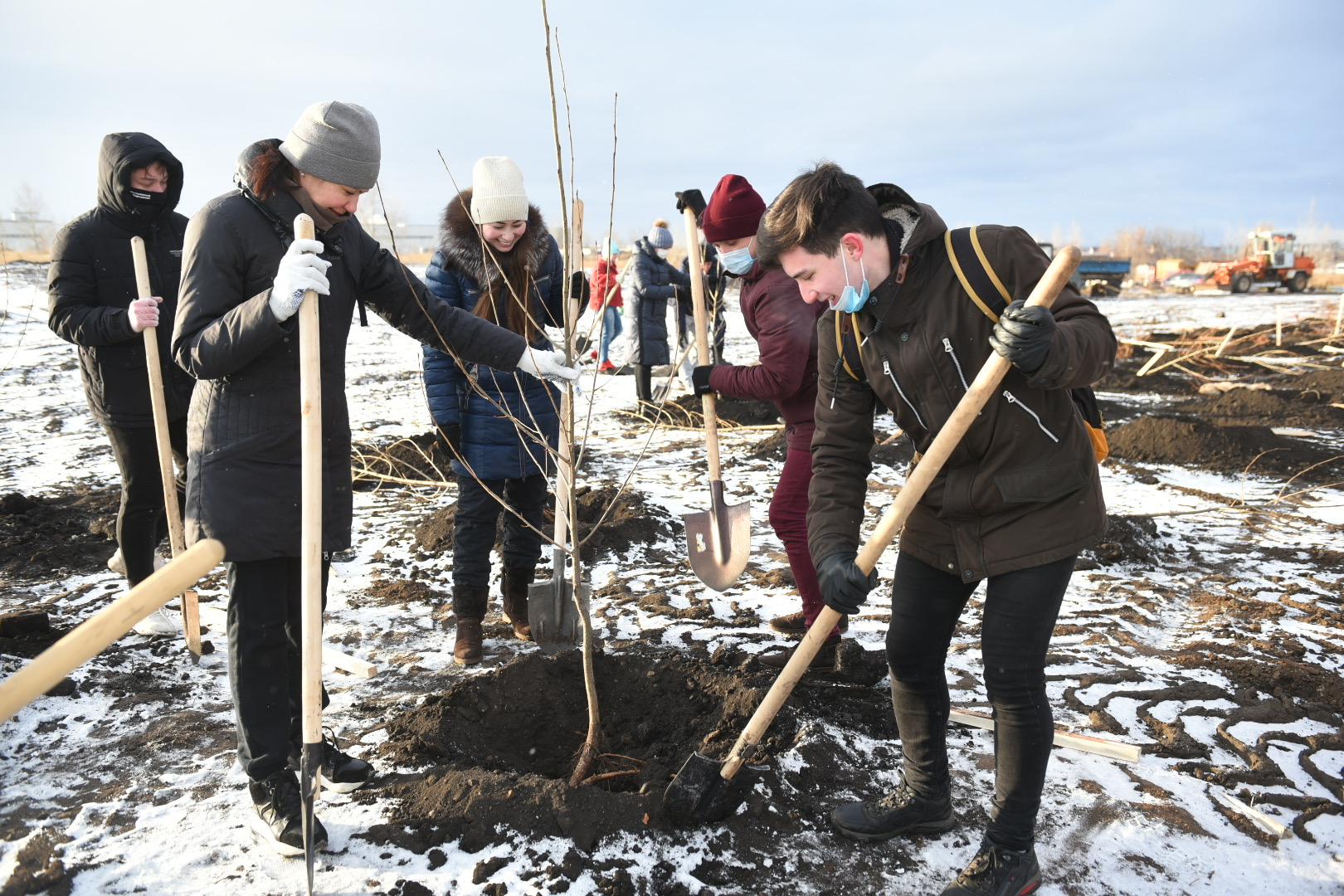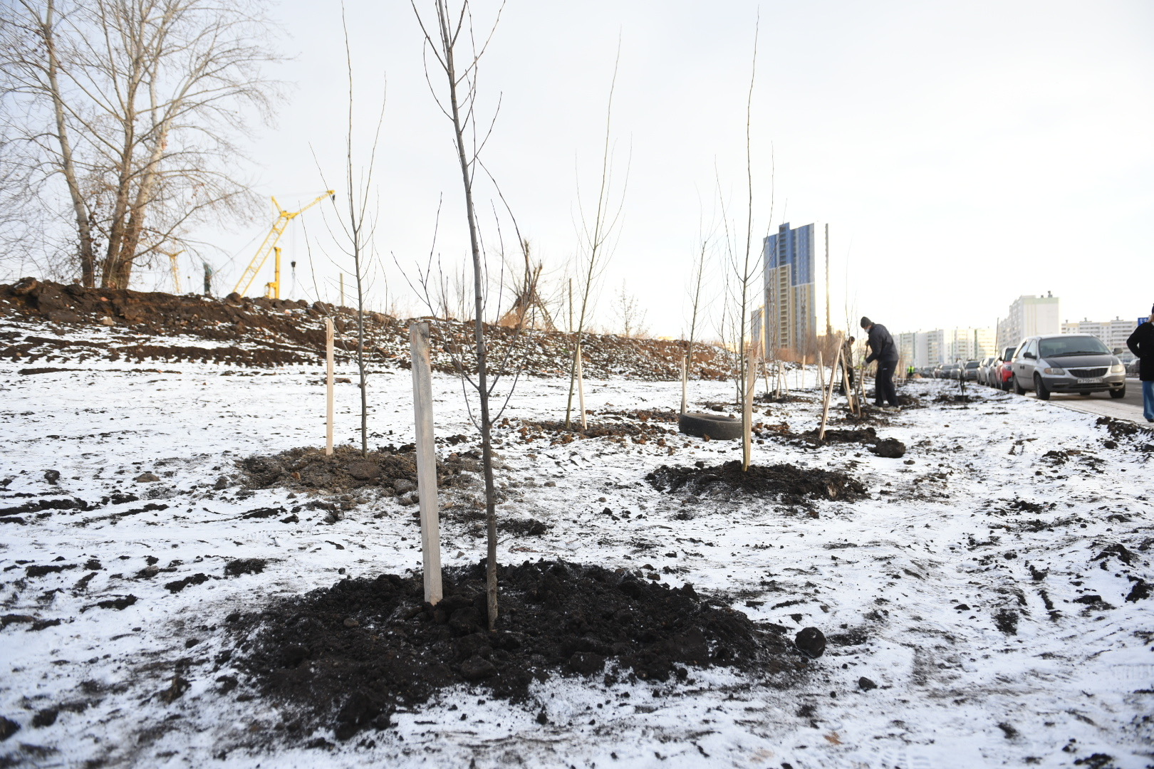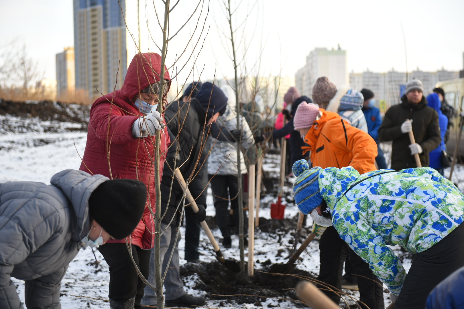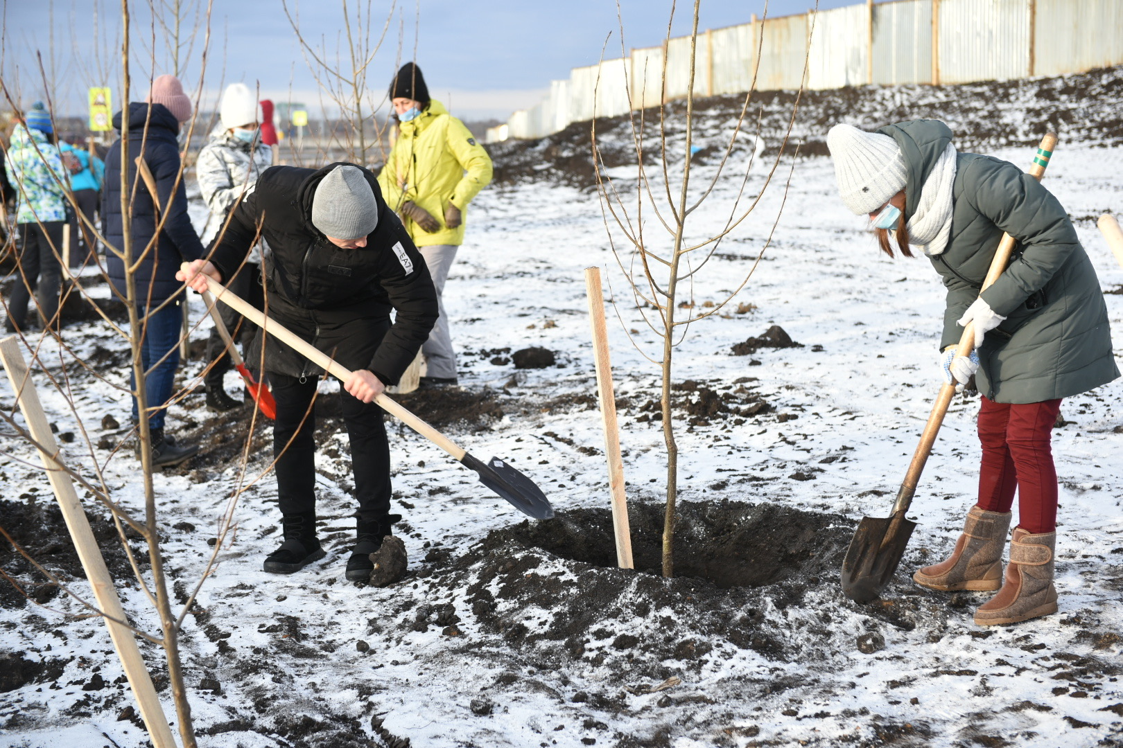 Бүген тирәкләр(гибрид - 38) утыртылды. "Горзеленхоз" ААҖ генераль директоры Азамат Вильданов сүзләренә караганда, бу агач төре мамыкланмый. Димәк, аллергия китереп чыгармый. "Агачны кышын утырту яхшырак. Чөнки агач йоклый, шуның белән 100 процент тернәкләнү тәэмин ителә", – дип билгеләп үтте ул.