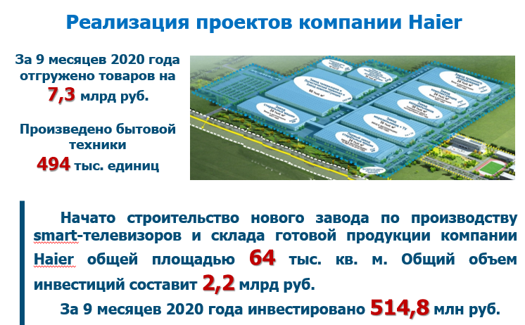 Самым крупным  резидентом ТОСЭР – китайской компанией - Хайер продолжается активная работа по созданию новых производств на территории индустриального парка.