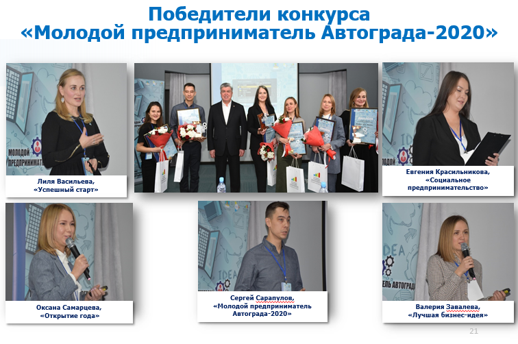В этом году самозанятые впервые смогли принять участие в ежегодном конкурсе «Молодой предприниматель Автограда 2020». В целом, несмотря на период пандемии, отмечена высокая активность желающих принять участие в данном конкурсе. Звание «Молодой предприниматель Автограда 2020» получил Сергей Сарапулов с проектом «Производство 3D-принтера».