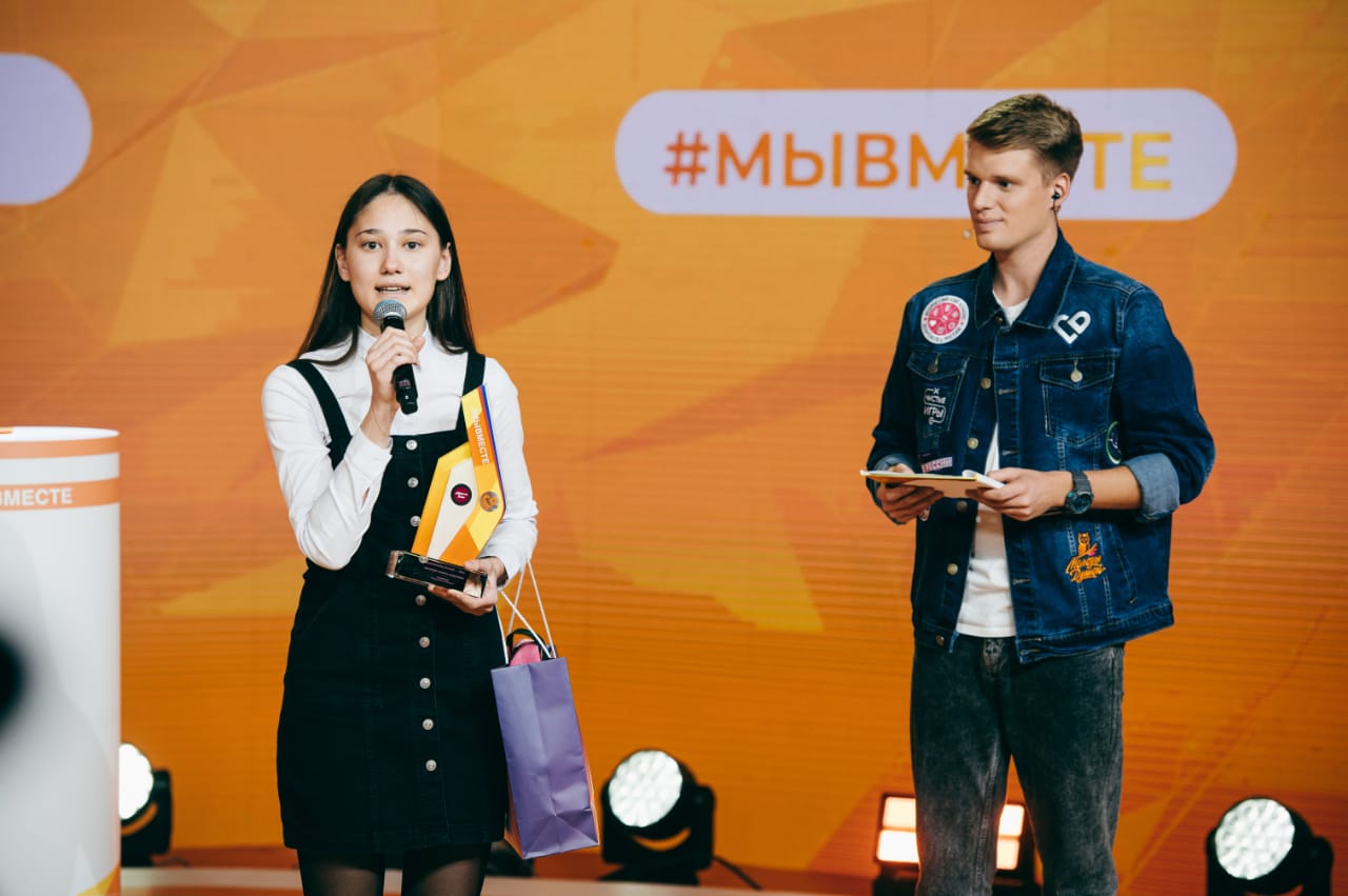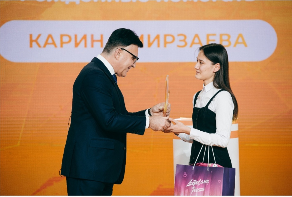 Церемония награждения победителей конкурса "Доброволец России" состоялась в рамках онлайн-марафона #МЫВМЕСТЕ. Награду Карине Мирзоевой вручил генеральный директор "Газпром медиа холдинг" Александр Жаров.