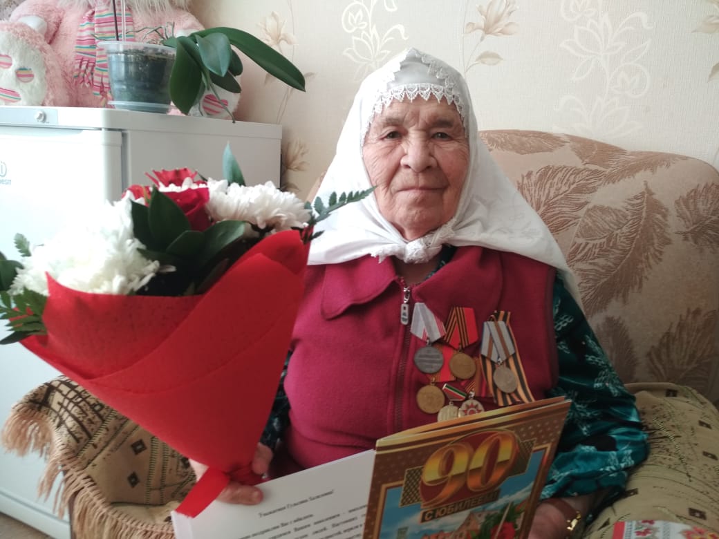 Сегодня от имени Президента Российской Федерации Владимира Путина и мэра города Набережные Челны Наиля Магдеева получила поздравления ветеран Великой Отечественной войны, жительница Автозаводского района, отмечающая свой 90-летний юбилей Гульсина Халиловна Булатова.