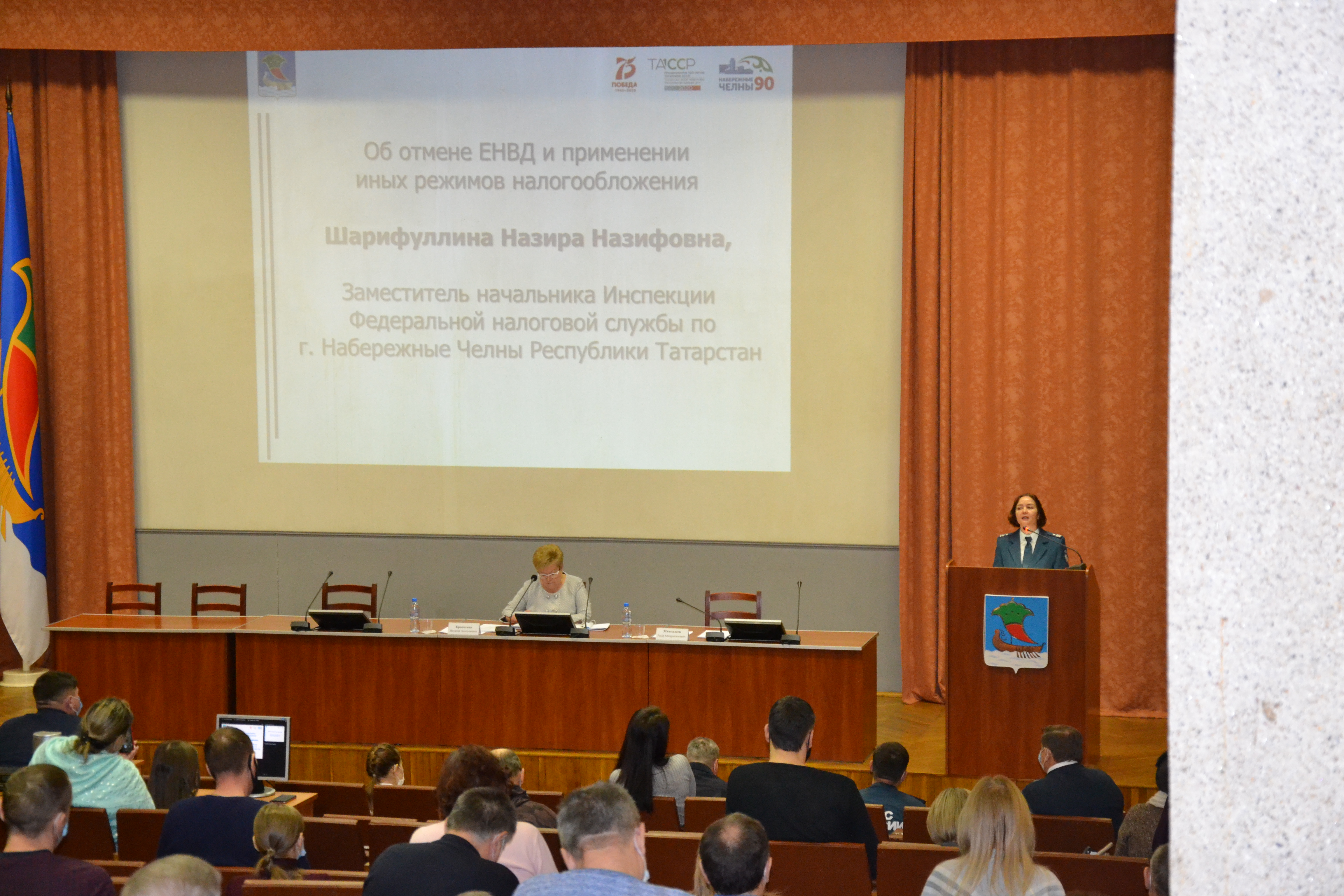 Заместитель начальника Инспекции Федеральной налоговой службы по г. Набережные Челны РТ Назира Шарифуллина рассказала присутствующим об отмене ЕНВД и применении иных режимов налогообложения.
