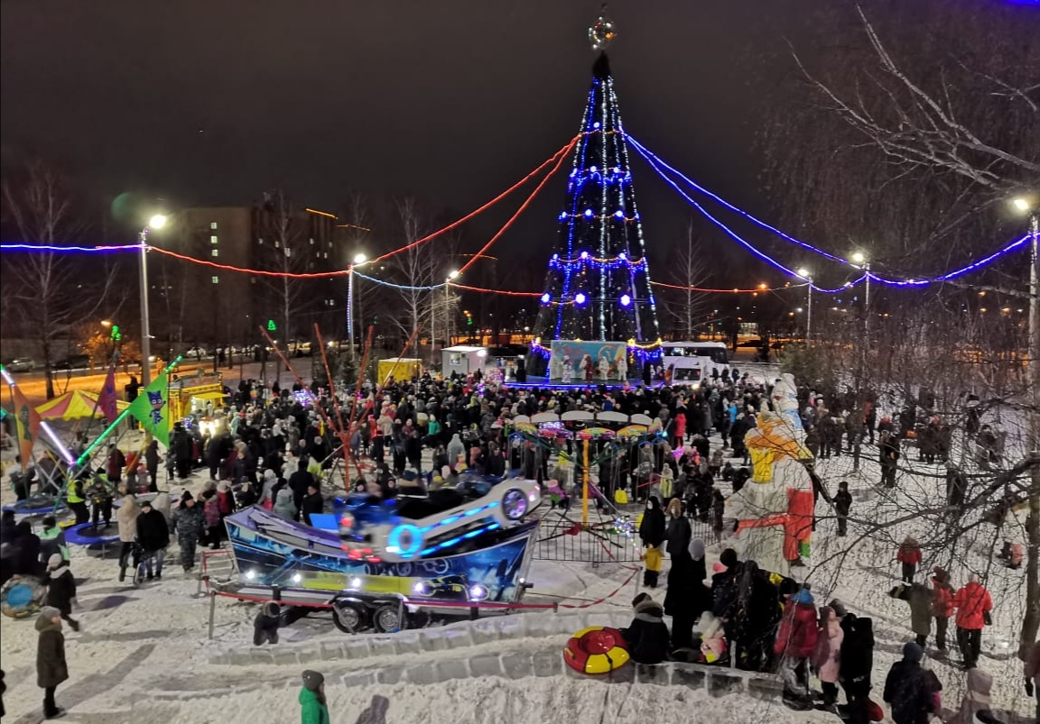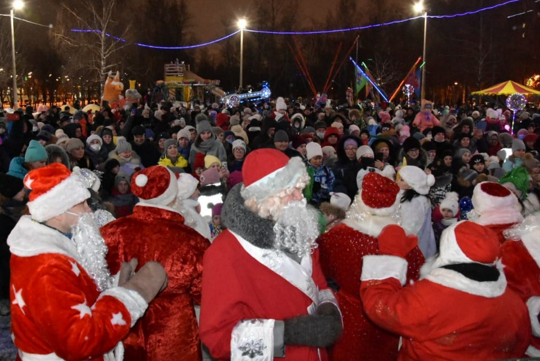 В Комсомольском районе в поселке Сидоровка состоялось праздничное мероприятие в честь открытия новогодней елки. Изюминкой мероприятия стали световое шоу и флешмоб Дедов Морозов. На новогодней площадке организовали все для праздничного настроения: аттракционы для детей, горку для катания на тюбингах, ледяную горку, песни, танцы, аттракционы. Недалеко от елки оборудован большой каток. Новогоднюю площадку украсили снежные фигуры, выполненные учениками и студентами учреждений образования.