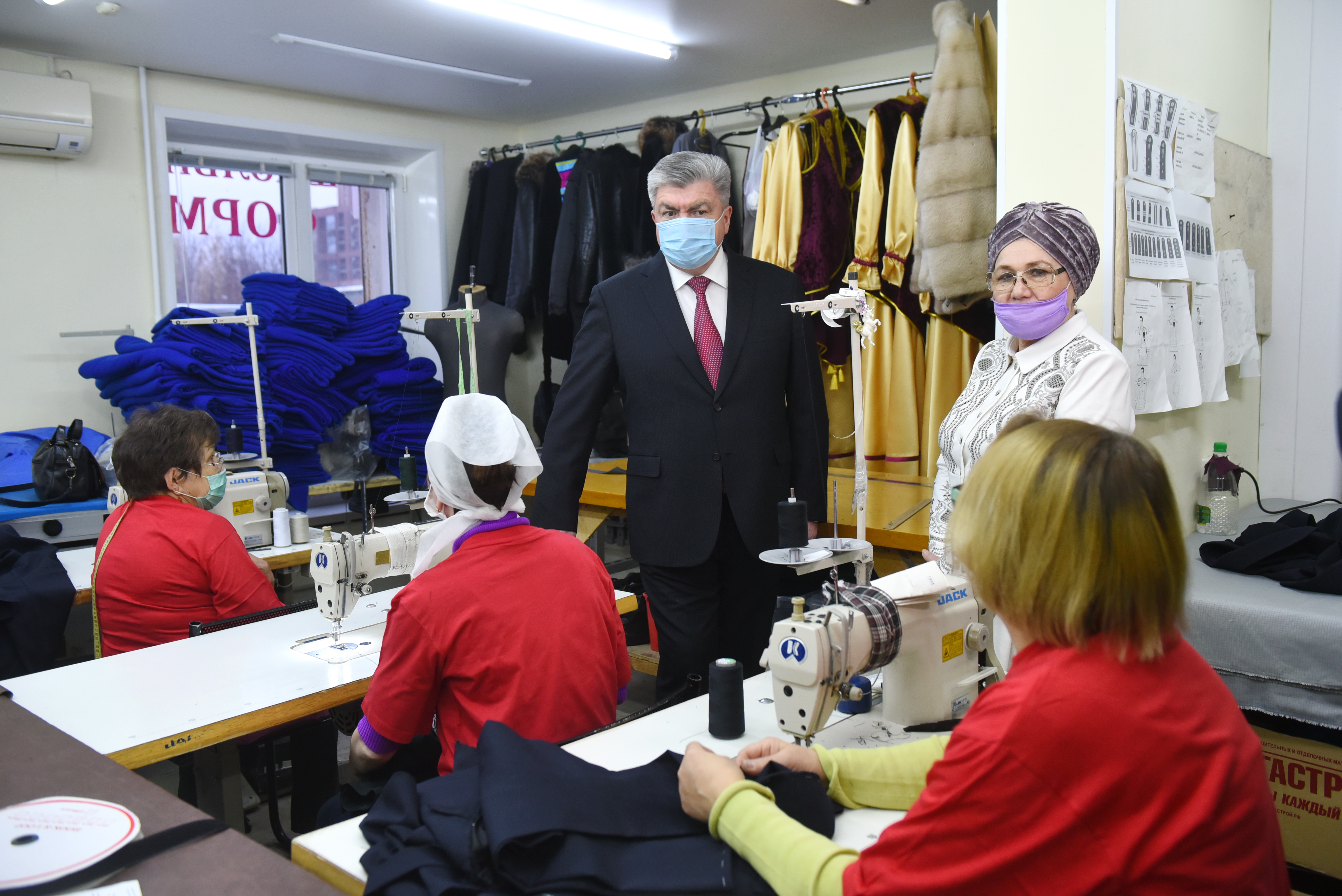 В коллективе работает 67 сотрудников в две смены. В этом году они обеспечили медиков защитными костюмами в количестве 13 тысяч штук и 75 тысячами масок. Наиль Магдеев поблагодарил коллектив «Триады» за проделанную работу, высоко оценив качество выпускаемой ими продукции: «Коллектив «Триада» сделал все, чтобы максимально обеспечить защитными масками и защитными костюмами. Было сшито более 75 тысяч масок, когда их не было в стране».