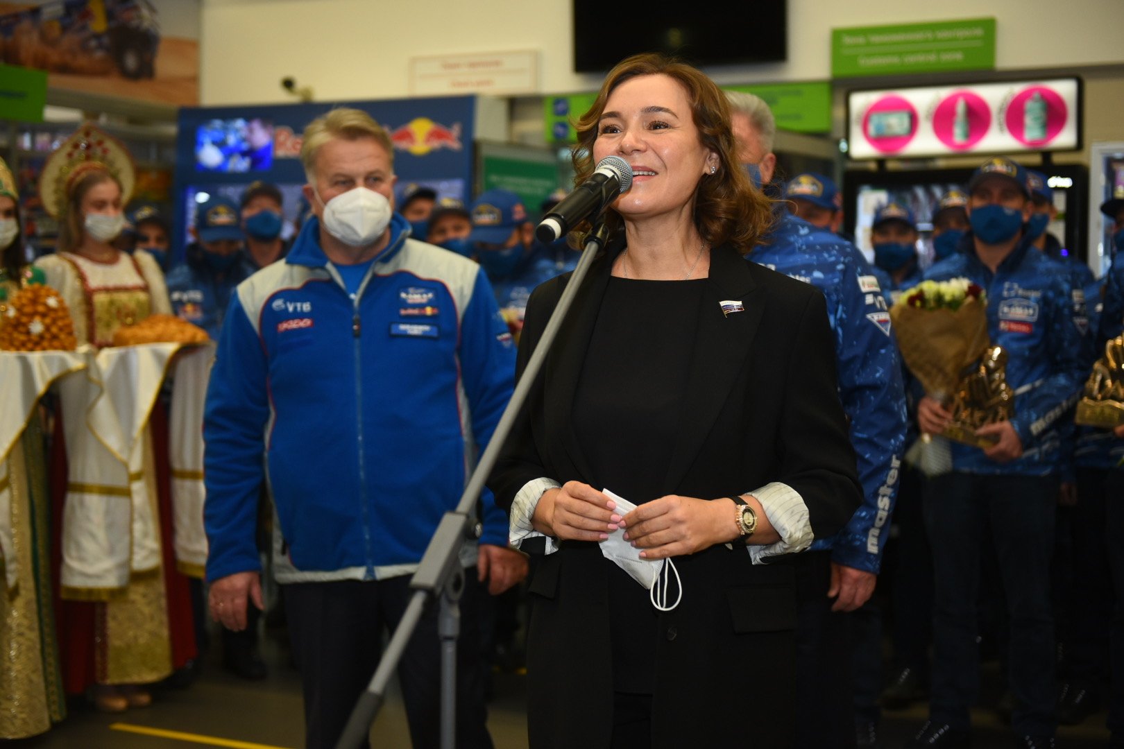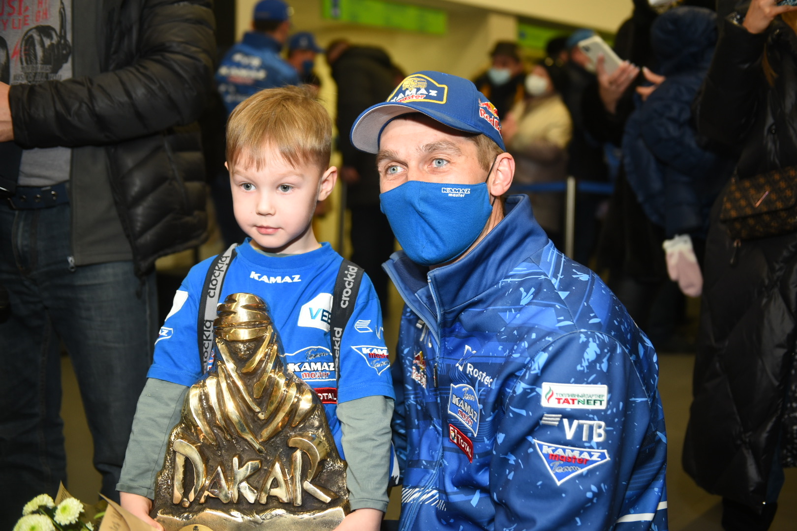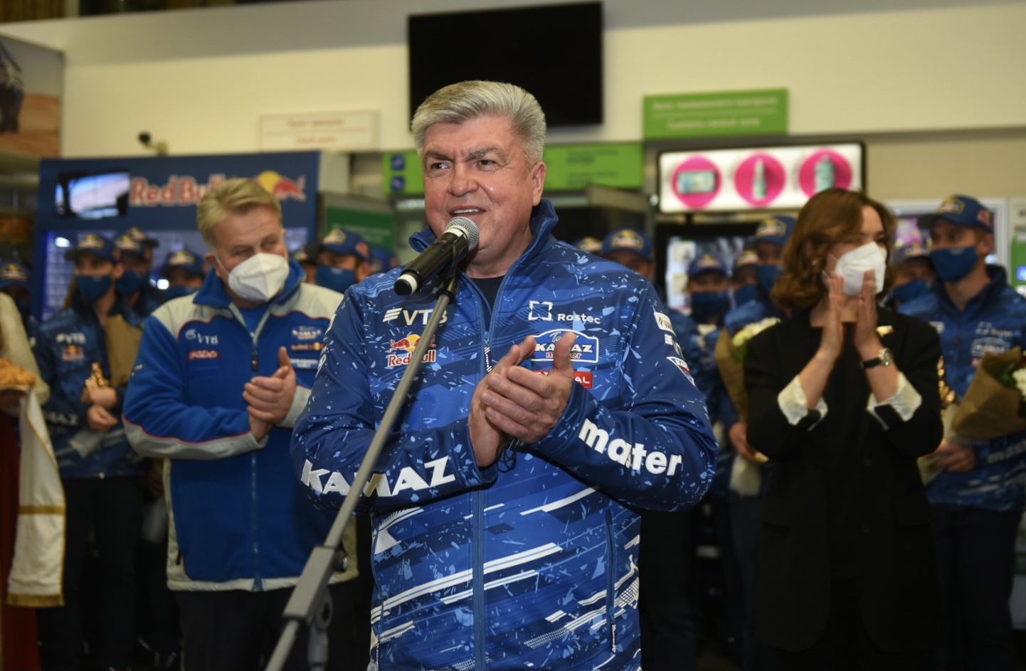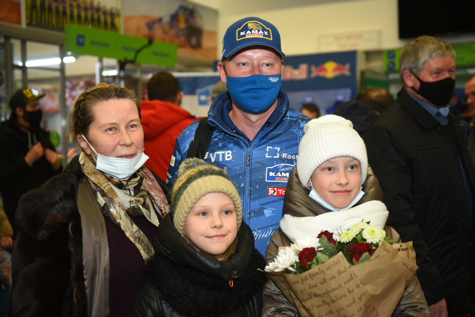 В Набережных Челнах встретили чемпионов «Дакар-2021» команду «КАМАЗ-мастер». В торжественном мероприятии, которое состоялось в аэропорту Бегишево, приняли участие мэр города Наиль Магдеев, депутат Государственной Думы РФ Альфия Когогина, заместитель генерального директора ПАО «КАМАЗ» Юрий Герасимов, председатель профсоюза работников ПАО «КАМАЗ» Кирилл Пузырьков, руководитель команды Владимир Чагин, а также родные и близкие спортсменов, болельщики команды.