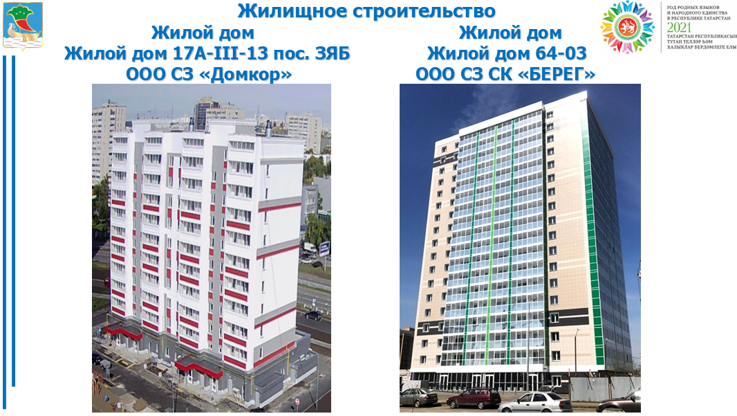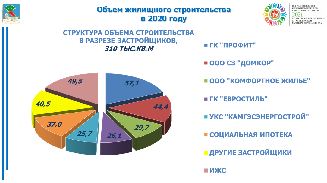построены компаниями «Профит», «Домкор» «Комфортное жилье», Группой Компаний «Евростиль», УКС «Камгэсэнергострой».