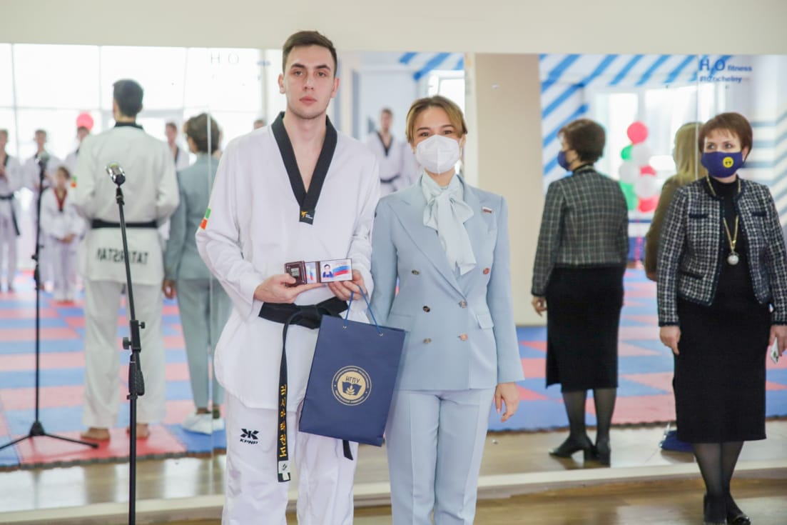 Также в ходе визита Альфия Когогина торжественно вручила удостоверения мастеров спорта по тхэквондо студентам НГПУ.