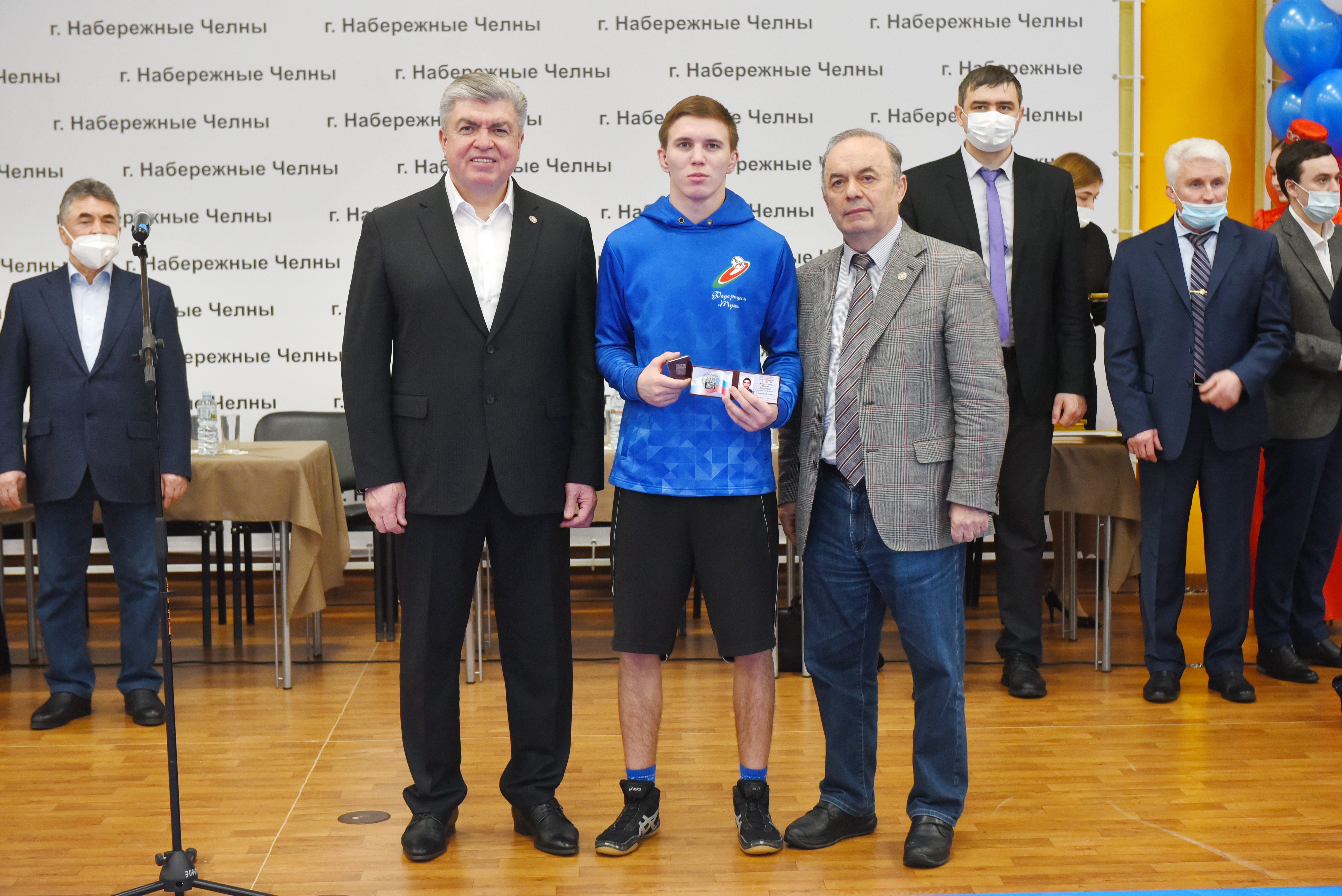 В торжественной церемонии приняли участие мэр города Набережные Челны Наиль Магдеев, председатель Ассоциации "Cовет муниципальных образований Республики Татарстан", мастер спорта СССР по греко-римской борьбе, заслуженный мастер спорта РТ по национальной борьбе Экзам Губайдуллин, депутат Государственного Совета РТ,  первый вице-президент федерации греко-римской борьбы РТ Марсель Мингалимов и другие.