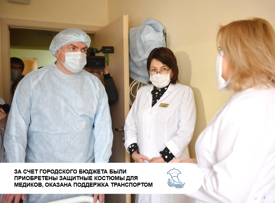Из-за пандемии особая нагрузка из-за легла на лечебные учреждения и работников здравоохранения. Для лечения больных с новой коронавирусной инфекцией было перепрофилировано три стационара. Общее количество коек составило 1096 единиц. За счет городского бюджета были приобретены защитные костюмы для медиков, оказана поддержка транспортом.