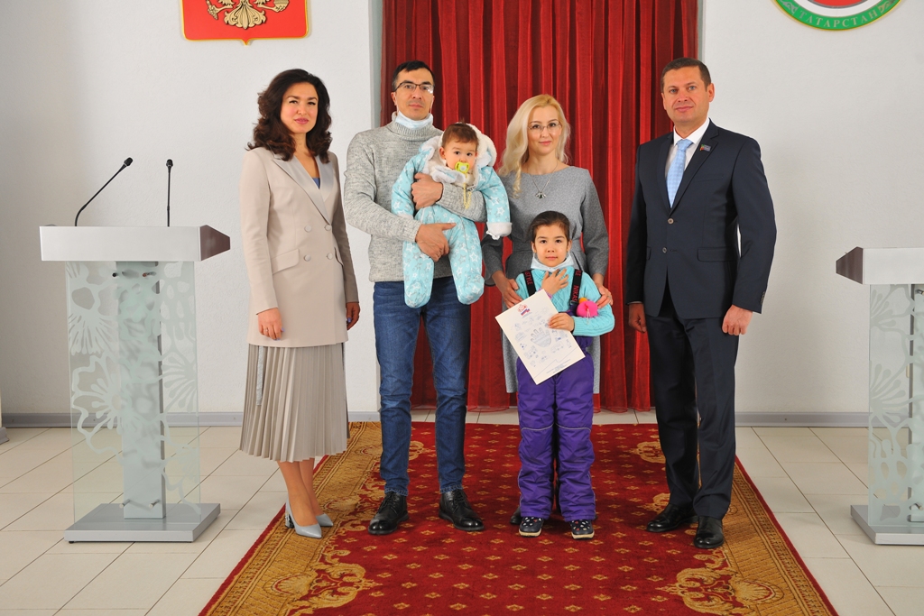Во Дворце торжеств состоялось вручение сертификатов на материнский капитал. В этот день сертификаты получили 16 челнинских семей. Поздравили семьи начальник Управления ЗАГС Равиля Зарипова и депутат Городского Совета, начальник Управления Пенсионного фонда Эдуард Фаттахов.