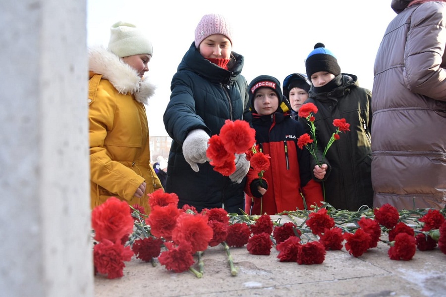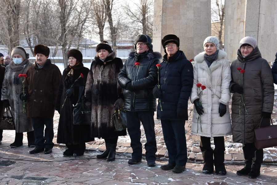 Челнинцы почтили память Мусы Джалиля минутой молчания и возложили цветы к памятнику.