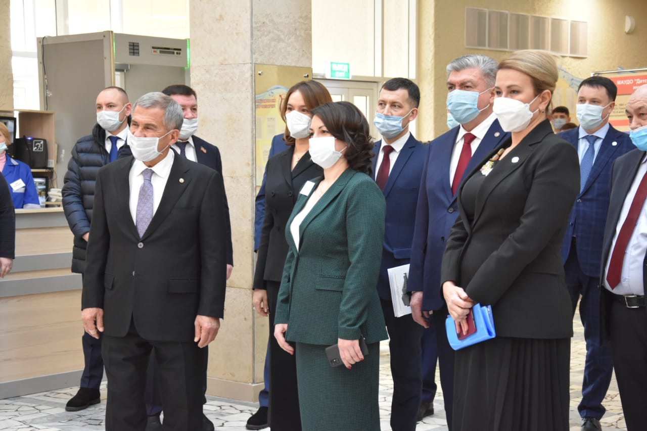 Вместе с мэром Набережных Челнов Наилем Магдеевым, депутатом Государственной Думы Альфией Когогиной и министром культуры РТ Ирадой Аюповой президент посетил музыкальную школу им.С.Сайдашева, которая в прошлом году была капитально отремонтирована.