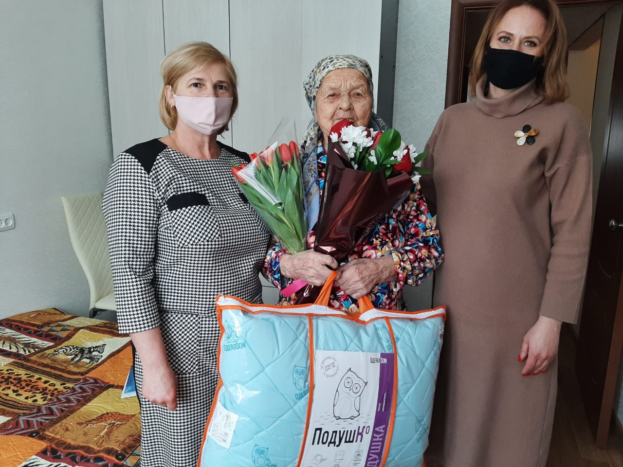 От имени президента России Владимира Путина и мэра Набережных Челнов Наиля Магдеева юбиляра поздравили замглавы администрации Автозаводского района Елена Альмухаметова и председатель ТОС «Импульс» Ольга Малышева.