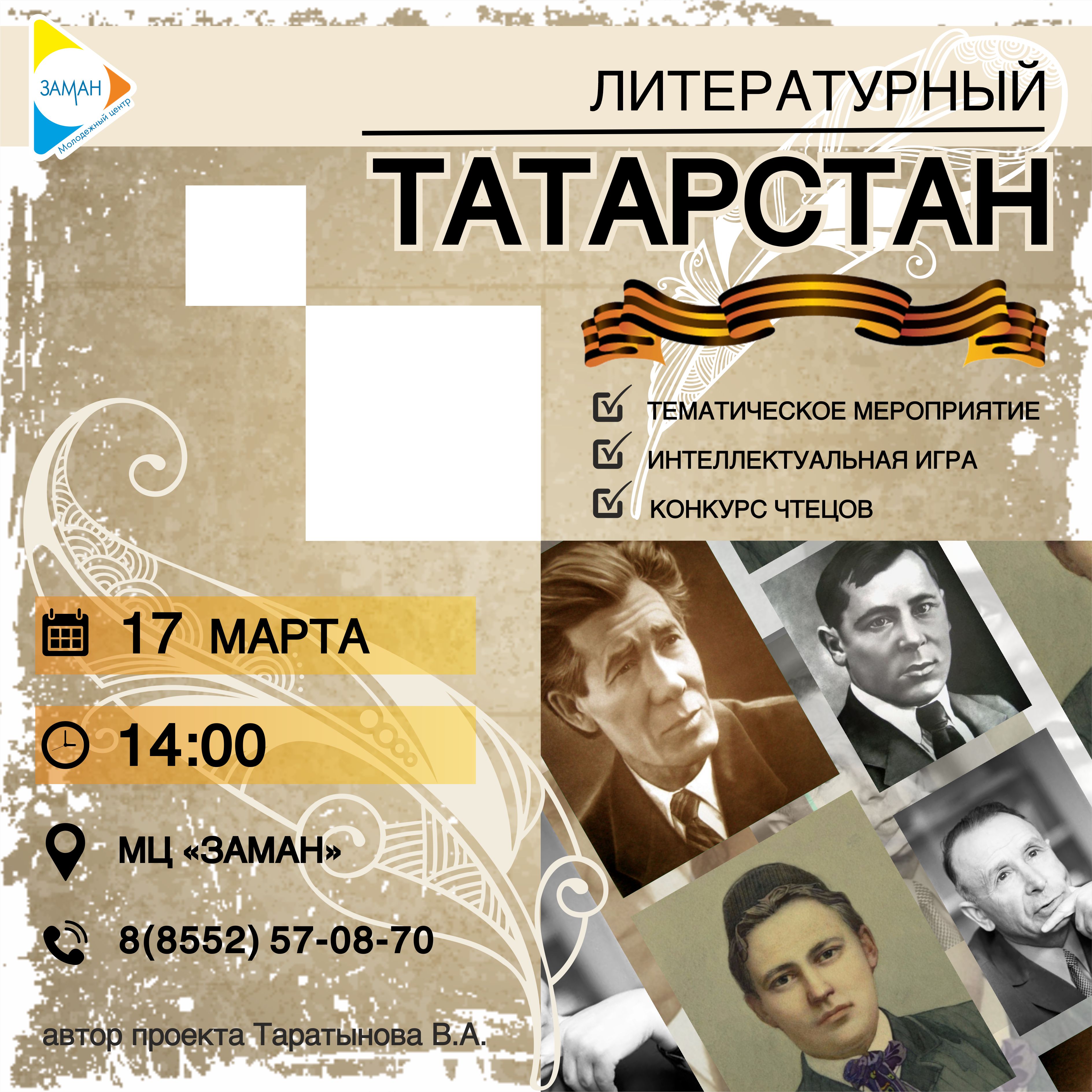 17 марта в МЦ "Заман" состоится тематическое мероприятие с интеллектуальной игрой и конкурсом чтецов «Литературный Татарстан», посвященное 76-ой годовщине Победы в Великой Отечественной войне и Году родных языков и народного единства в РТ. Начало мероприятия в 14:00.