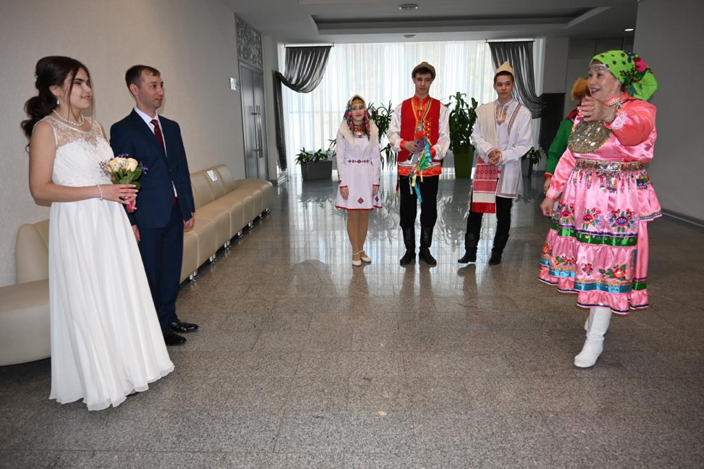 В ЗАГСе Набережных Челнов провели регистрацию заключения брака по традициям марийского народа. Церемония бракосочетания Вениамина Утябаева и Марины Абышевой состоялась при участии коллектива Домы дружбы народов, народного фольклорного ансамбля «Марий Сем» и Марийской общины города.