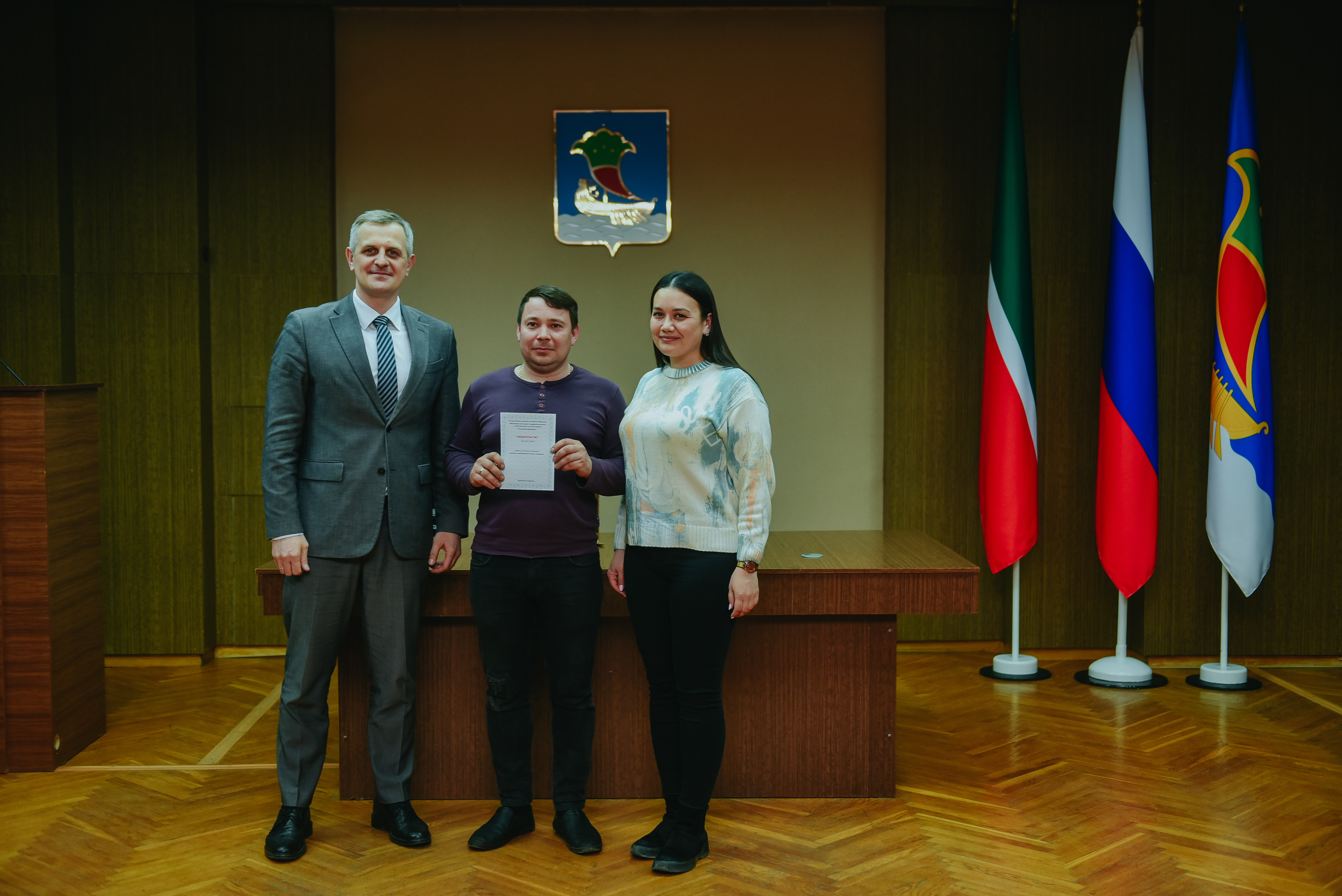 В Исполнительном комитете челнинским семьям вручили свидетельства о праве на получение социальной выплаты на приобретение жилья по программе "Обеспечение жильем молодых семей в Республике Татарстан". Торжественное вручение состоялось при участии И.о. руководителя Исполнительного комитета Ильи Зуева.