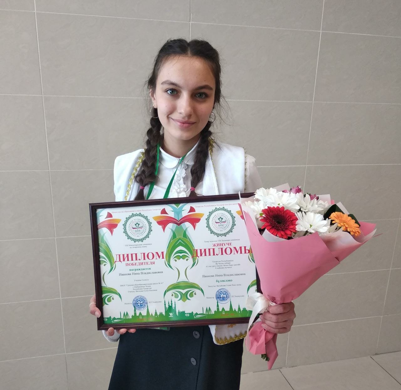На Международной олимпиаде по татарскому языку приняли участие около 500 человек, из них отобраны 77 призеров и 20 победителей. В числе победителей и ученица 9 класса школы №41 Нина Иванова. Также призером олимпиады стала ученица 9 класса гимназии №2 им. М. Вахитова Диана Демашина.