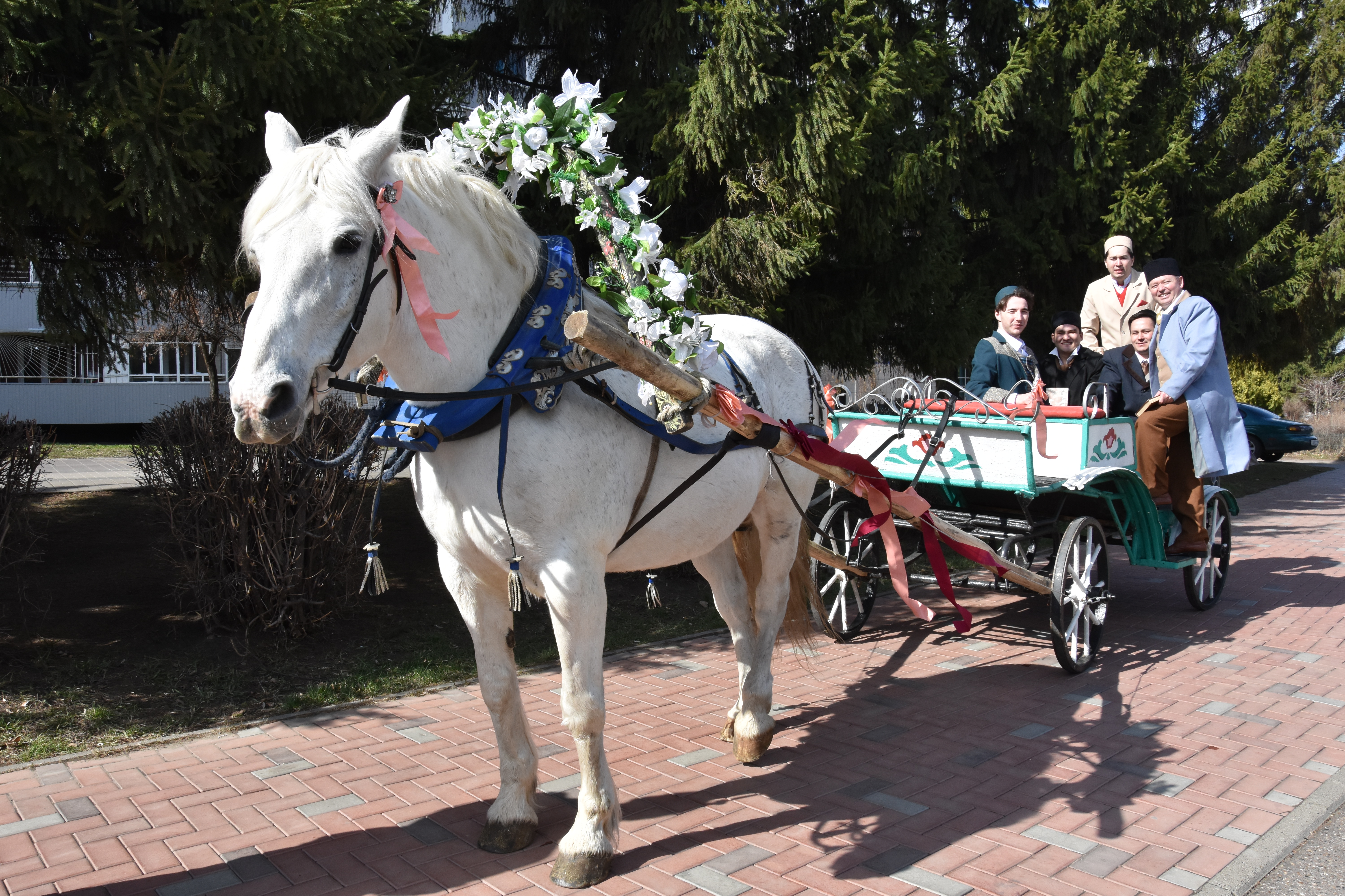 Торжественная часть мероприятия открылась выходом артистов в образе Тукая и его современников. Артисты Набережночелнинского татарского драматического театра им. А.Гилязова показали литературно-музыкальную композицию. Они подъехали к скверу Г. Тукая на украшенной карете.
