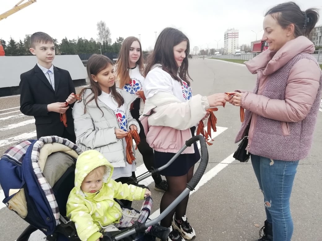 В Комсомольском районе стартовала Всероссийская акция "Георгиевская ленточка". Участники проекта "Самостоятельные дети" на территории мемориального комплекса "Родина -Мать" раздавали символ Победы жителям района.