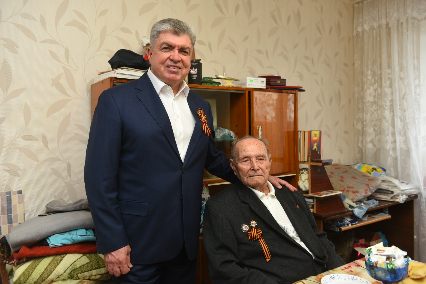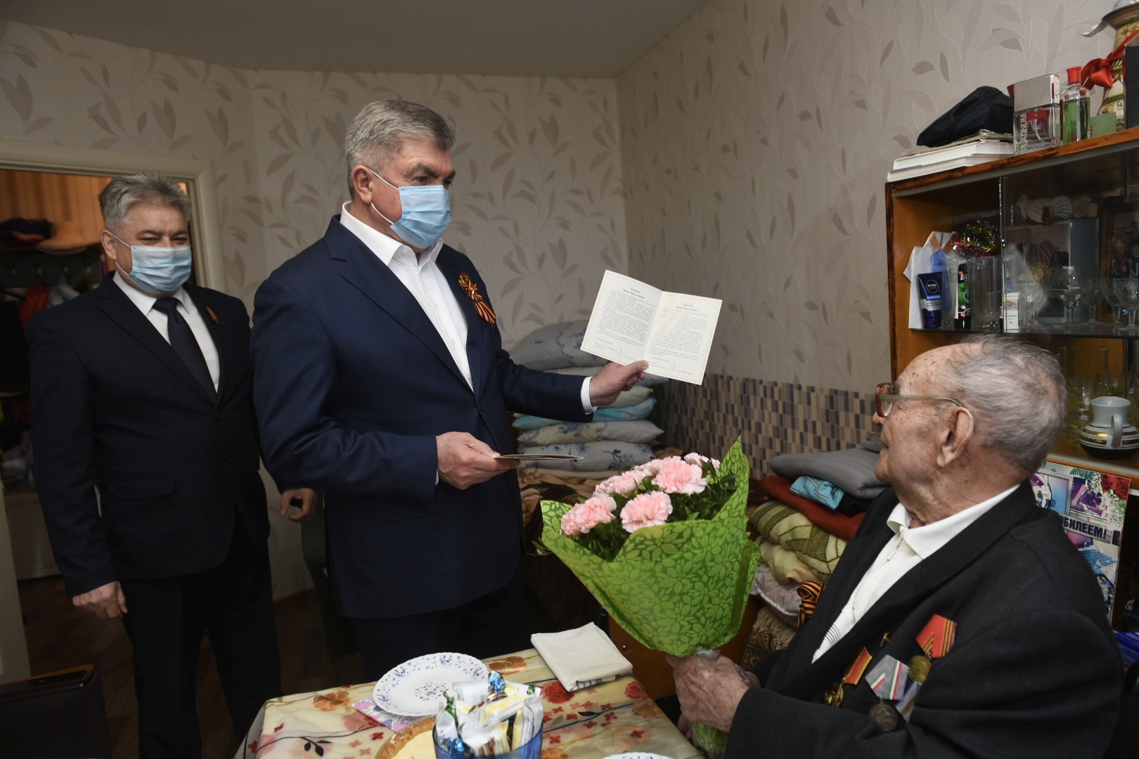 Мэр Набережных Челнов Наиль Магдеев поздравил 99-летнего участника Великой Отечественной войны Ивана Николаевича Канидиева с наступающим Днем Победы. Вместе с главой Автозаводского района Винером Харисовым глава города побывал в гостях у ветерана, вручил ему подарки и поздравления от президента Татарстана Рустама Минниханова и от своего имени.
