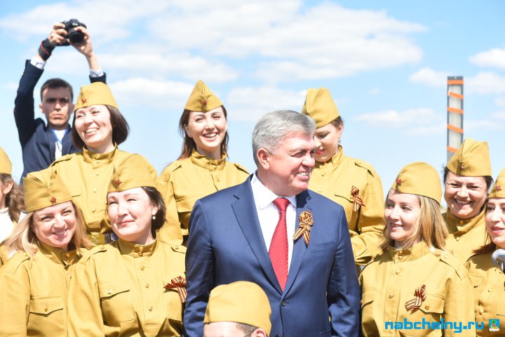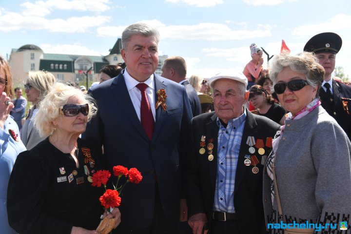 11:00 сәгатьтә бәйрәм чаралары Габдулла Тукай исемендәге яр буенда башланды. Яр Чаллының Үзәк урамында ветераннарны парадтан соң солдат боткасы белән сыйладылар. Ветераннар белән бергә солдат боткасын шәһәр мэры Наил Мәһдиев һәм Татарстан Республикасы Дәүләт Советы депутаты Светлана Захарова да авыз итте.