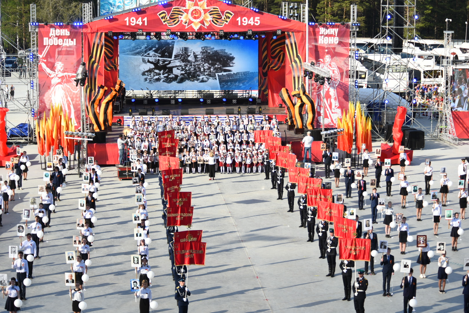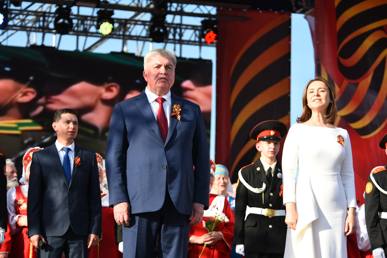 Бәйрәмдә катнашучылар һәм кунаклар бергәләп «Җиңү көне» җырын башкардылар. Шунысын да билгеләп үтәргә кирәк, Җиңүнең 30 еллыгына язылган әлеге җыр инде менә 46 ел буе Җиңү бәйрәменең музыкаль символы булып тора.