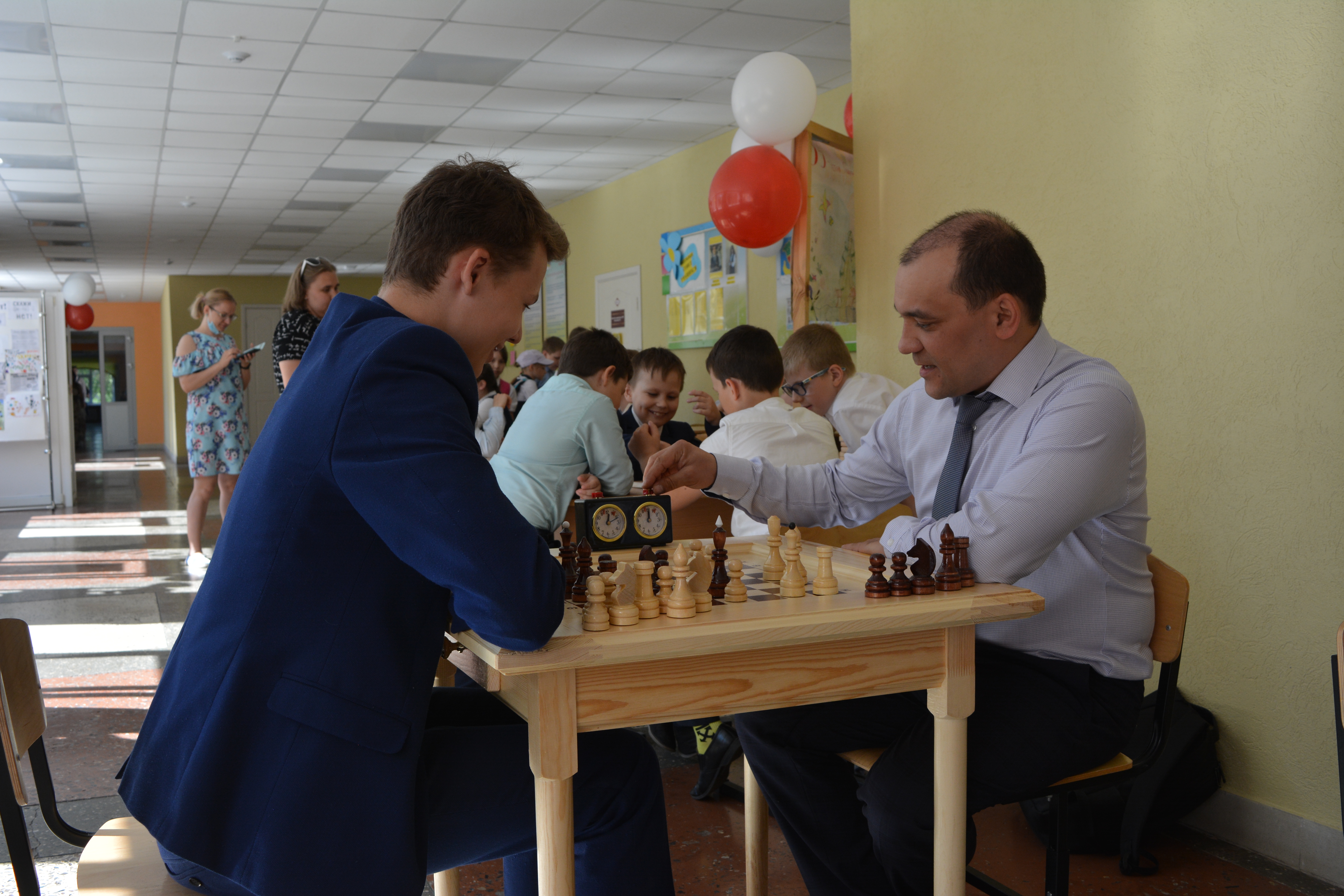 В считанные минуты первоклашки и старшеклассники заняли места за шахматными столами и начались баталии.